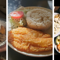 Arroz, ensalada y pescado frito o salsa. Fish soup. Friday only.